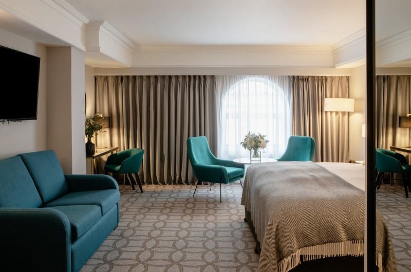 Guests staying in our Suites benefit from access to our Executive Lounge (and its selection of complimentary beverages and snacks), a Nespresso coffee machine in-room and complimentary robes and slippers. As standard, our Junior Suite boasts a super king bed with cashmere throw, a 49-inch Smart TV, complimentary access to Dublin’s fastest hotel WiFi and a marble-clad ensuite with rainforest walk-in shower and premium Paul Costelloe toiletries.